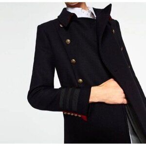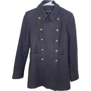 Zara Wool Navy Military Coat Jacket Double Breasted Size XS