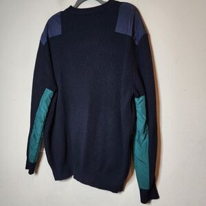 Zara Wool-Blend Navy Ribbed Green Blue contrast patches. Size XL