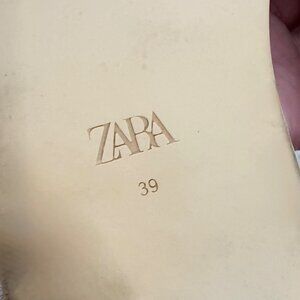 Zara Woven Raffia Slide Square Toe Flat Sandals Tan Boho Cottagecore Casual 39/9