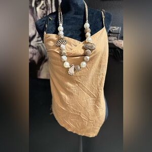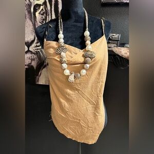 lightweight and breathable, bead detail, open back sleeveless, drape front