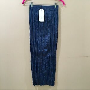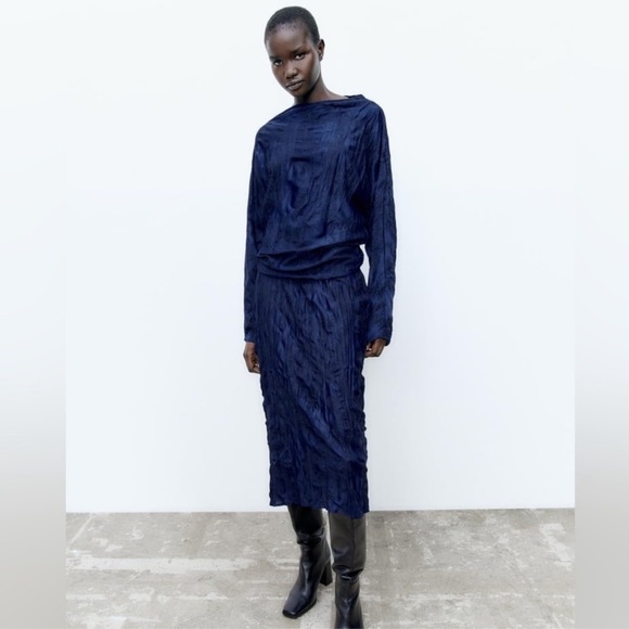 Zara Wrinkled Midi Skirt Women’s Size M Blue Satin Effect Blogger New 1131/835