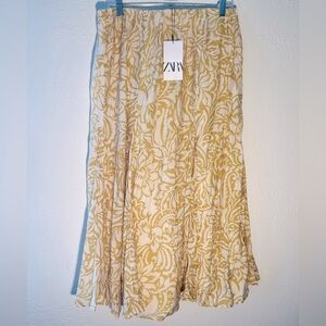 Zara XL Printed Wrinkled Midi Flowy Boho Skirt NWT