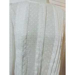 Zara plumetis XS white sheer long sleeve blouse with cute keyhole button neck