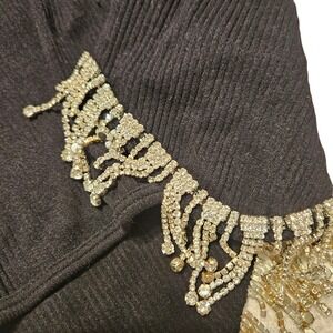 Zara XS/S Black Ribbed Tank Top Rhinestone Fringe Sleeveless Cropped