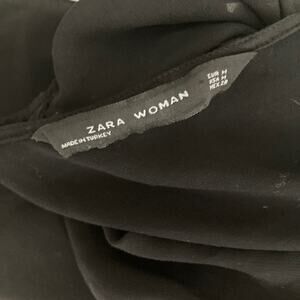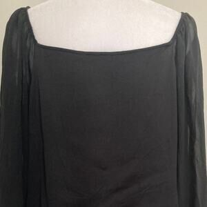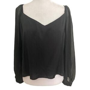 Zara Y2k Blouse size M Black Sheer Long Sleeves V-Neck Puff