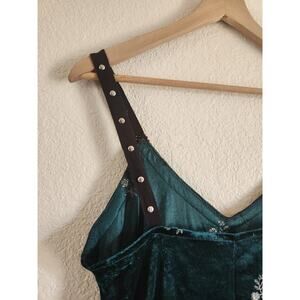 Zara Y2k Suede Flower Embroidered Lace Forest Green Dress