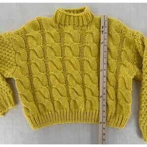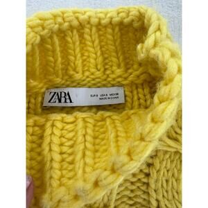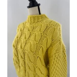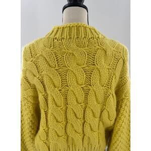 Zara Yellow Cableknit Sweater Mockneck Gold Knit Pullover Small Crop