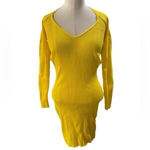 Zara Yellow Canelado Amarelo Ribbed open back sweater dress size small