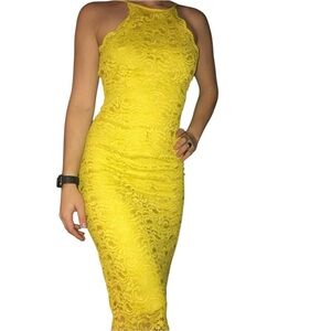 Zara Yellow Halter Neck Bodycon Midi Dress
