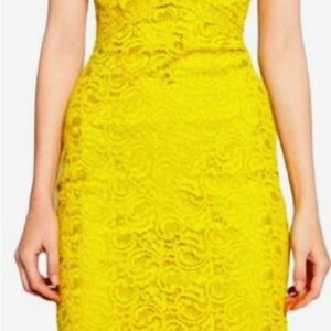This stunning yellow dress by Zara is designed for wedding guests and cocktail occasions. It features a sleeveless halter neckline and a bodycon fit that beautifully accentuates the silhouette. The midi length adds a sophisticated touch to this elegant piece. "New without tags"