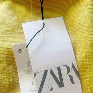 Zara Yellow Jacquard Tapestry Ruffle Sleeve Top Size Medium NWT