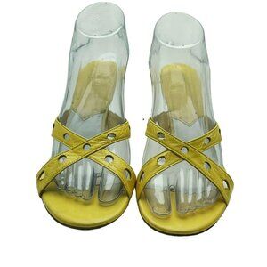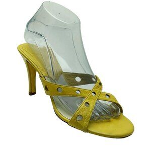 Zara Yellow Leather Crossed Vamp Heeled Sandals Size 8.5M