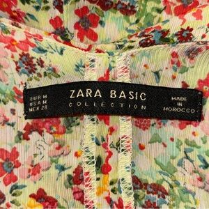 Zara Yellow Multicolor Floral Print Flutter Sleeve Dress Sz M