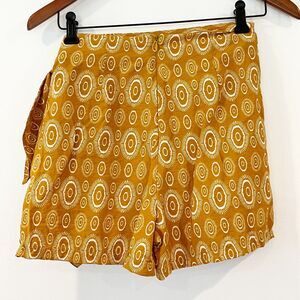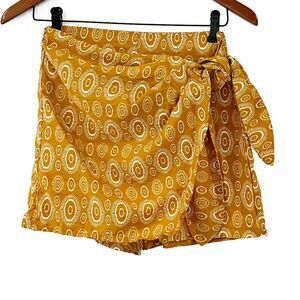 Zara Yellow Mustard Wrap Front Skort Shorts High Waist Tribal XS Tie Front