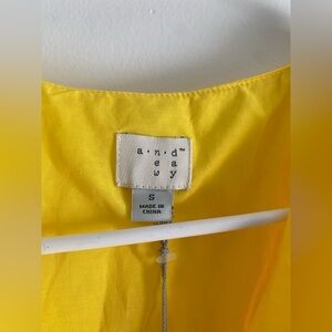 Bright yellow blouse with ruffle details. Sleeveless design. Perfect for a sunny day. Strap wraps around. So flattering