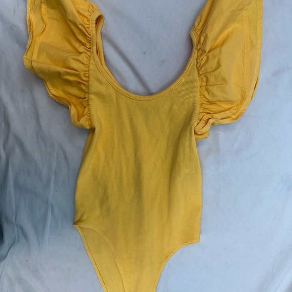 Zara Yellow Ruffled Ribbed Bodysuit S