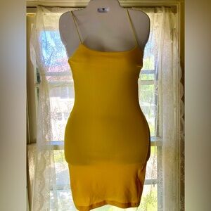 Brighten up your wardrobe with this stunning yellow spaghetti strap dress. Perfect for any occasion, this dress offers a sleek and elegant look.