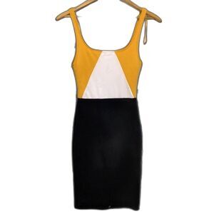 Zara Yellow White and Black Colorblock Sleeveless Knit Bodycon Dress Size S