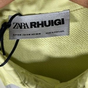 Stylish Zara polo shirt. Features yellow and white stripes. Comfortable and trendy design.
