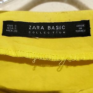 Preowned Zara Yellow Tunic Dress Shirt With Ruched Sleeves & Pockets Women's Size Small. Dress is 100% Cotton in excellent condition.