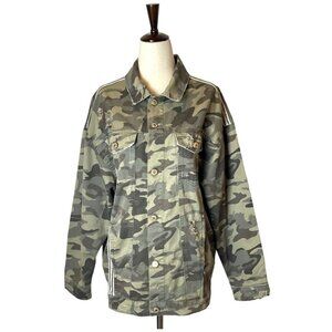 Denim, jacket, outerwear, casual, classic, long sleeves, winter, fall, spring, designer, urban, edgy, jean, chic, outdoor, comfy, comfortable, jean jacket, button-down, button-up, button-front, Denim, Jeans, Camo, Camouflage, sequins, sequined, striped, S, Small, Women's, military, army, camo, outerwear, trendy, stylish, chic, fall, winter,