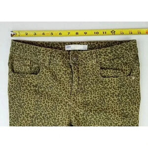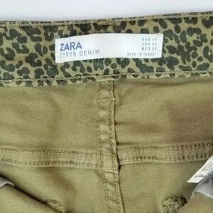 Zara Z1975 Denim Size 6 Women's Tab Brown Cheetah Print Logo Tag Denim Jeans