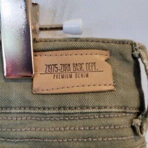 Zara | Z1975 Denim Zipper Ankle Moto Skinny Jeans Green Gray
