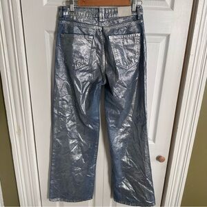 Zara Z1975 MID RISE STRAIGHT CUT METALLIC FOIL JEANS Blue Silver NWOT Size 4