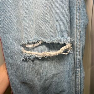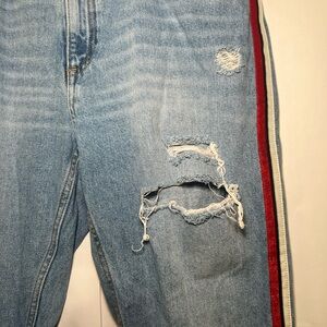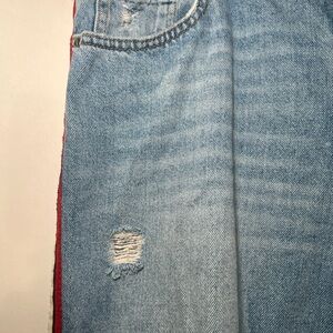 Zara Z1975 Straight Leg Distressed Blue Jeans W/ Red White & Blue Stripe SZ 10