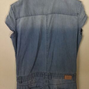 Stylish and comfortable blue denim jumpsuit perfect for casual outings. Features a button-up front and short sleeves for a relaxed look.