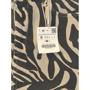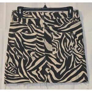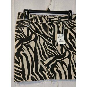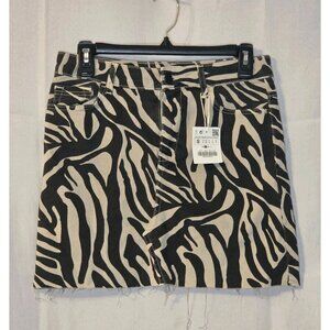 Zara Z1975 Zebra Print Denim Skirt Size Small Raw Hem Front Zip NWT