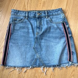 Zara Z1975 Side Stripe Raw Hem Denim Mini Skirt. Good pre-owned condition.