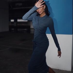 Zara ZW Collection Asymmetric Dress With Knots Blue Grey M