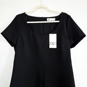 Zara ZW Collection Black Short Sleeve Round Neck A Line Knee Length Sheath Dress Size Large