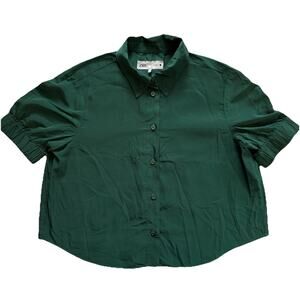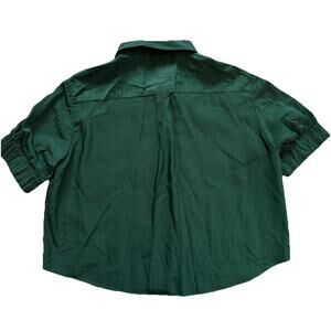 Zara ZW Collection Button Down Shirt Size Medium Puff Sleeve Crop Emerald Green
