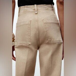 Zara ZW Collection High Waist Wide Leg Tan Jeans Size 6