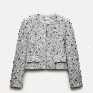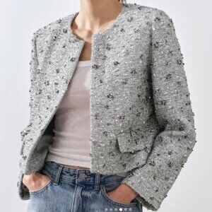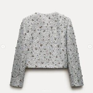 Zara ZW Collection Sequin Jacket Silver L NEW SS24 2885/152