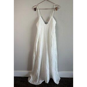 Zara ZW Collection White Linen Blend Maxi Dress Womens Flow V-Neck Summer Size l