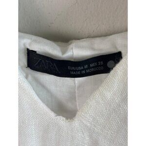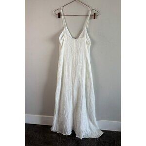 Zara ZW Collection White Linen Blend Maxi Dress Womens Flow V-Neck Summer Size large