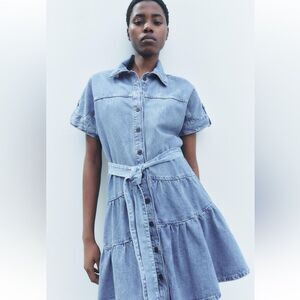 Zara ZW collection denim midi dress NWT