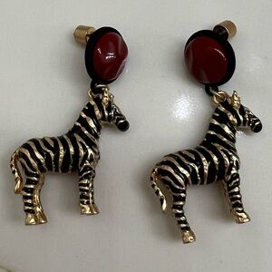 Add a touch of elegance with these zebra drop earrings featuring a striking black and gold design. Perfect for any occasion. NWOT