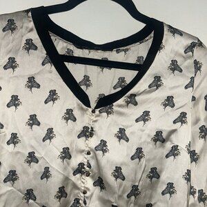 Zara Zebra Print Off White Black Trim Novelty Chic Polyster Blouse Size Small