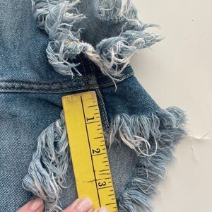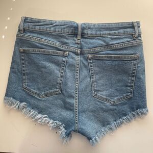 Zara Zip Fly High Rise Distressed Raw Frayed Hem Denim Jean Shorts Blue Size 8