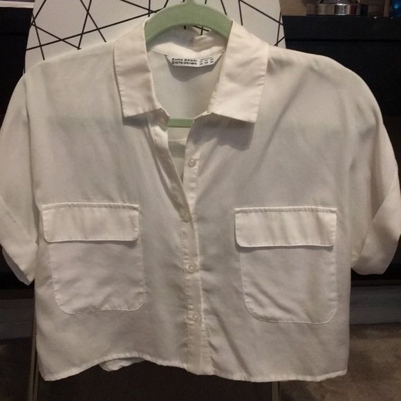 Zara basic collared, button down, crop top. Great condition. Size XS