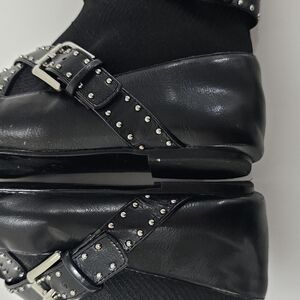 Zara basic Black Studded Sock Buckle Flats Pointed toe Shoes Size 6