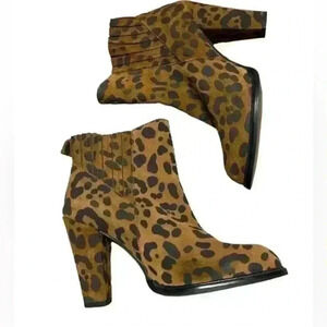 - Zara basic cheetah print boots ankle length heeled Sz 38(7.5)