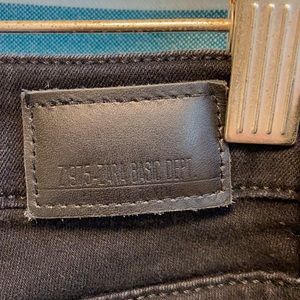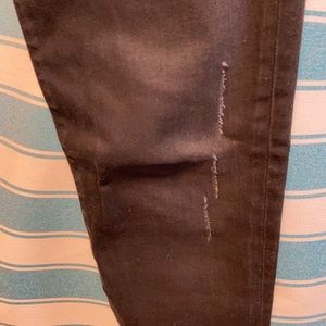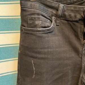 Super soft black denim with unfinished hem * worn in all the right places*. Size 04