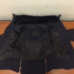 Zara basic jacket. I live in NYC and it kept me really warm in the winter. It was good while it lasted me only one winter before I didn't fit anymore. There is a defect shown in the third picture at the lining of the zipper but it doesn't really show. Other than that it looks fantastic. It also has a hood that can be stored back at the collar when not in use.