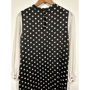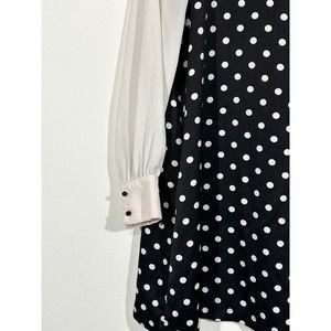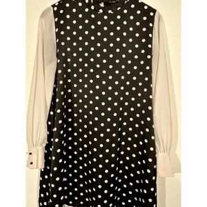 Preloved Zara, basic black and white polkadot dress with white balloon sleeves good condition shoulders measure 14 1/2 inches seam to seam pit to pit measures 19.5 inches total length is 33 inches sleeves from shelter same is 21 inches.