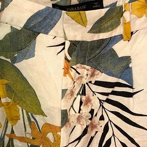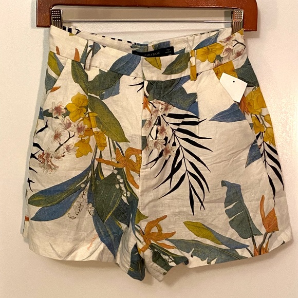 Zara mid-high waisted tropical print linen short